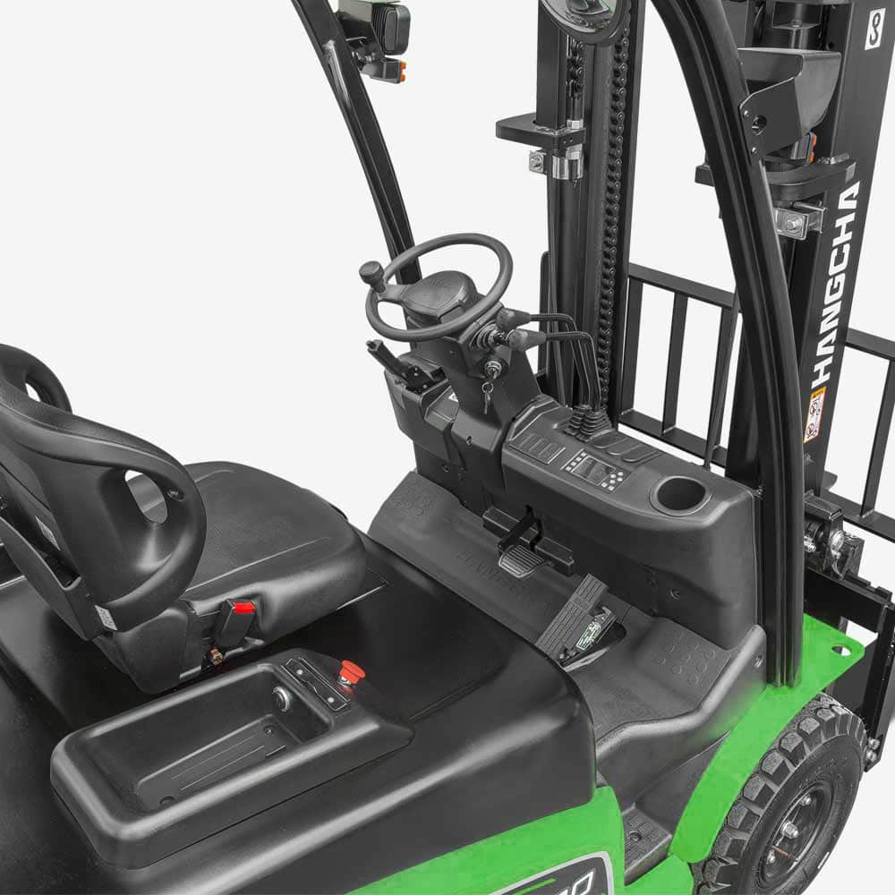 Ergonomi esas alınarak tasarlanan daha uzun dingil mesafesi, bacaklar için daha geniş alan sağlar. Direksiyon çapı 300 mm’ye düşürüldü. Operatörlerin en iyi sürüş pozisyonunu seçebilmeleri için koltuklar ileri ve geri ayarlanabilmektedir.