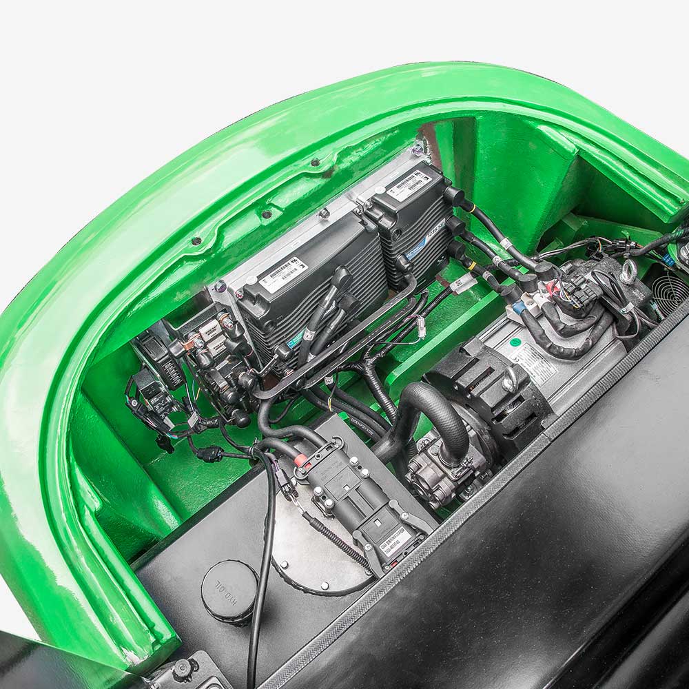 Yüksek frekanslı MOSFET entegre denetleyici, düzgün ve doğru sürüş ve kaldırma kontrolü sağlar ve mükemmel hız düzenleme performansına, motorla eşleşen elektronik kontrolün iyi performansına, rejeneratif frenleme, ters frenleme ve rampalarda kaymayı önleme işlevlerine vb. sahiptir. ve yüksek güvenlik ve güvenilirlik.
