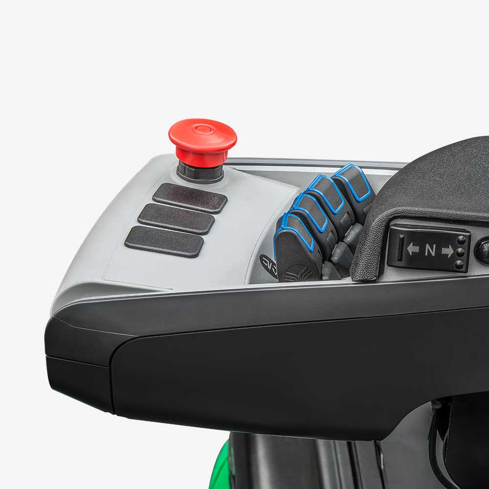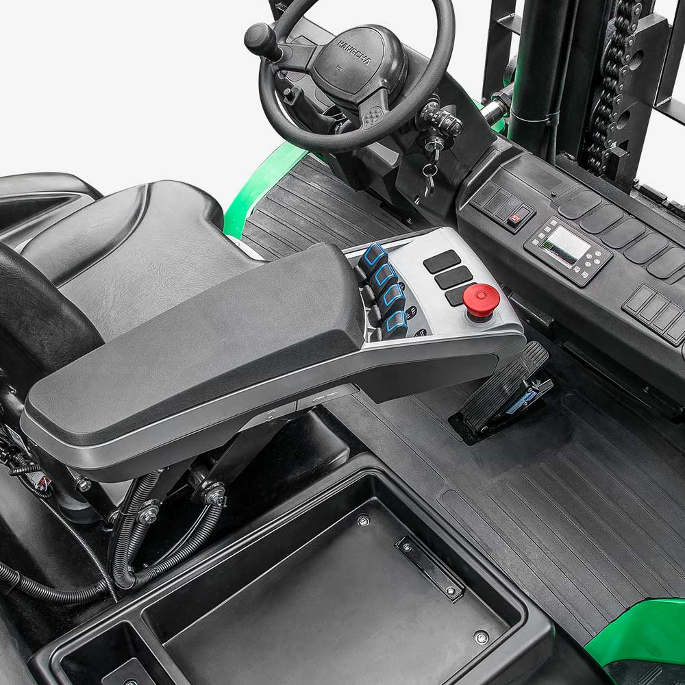 Ergonomik tasarımlı el çarkının eğim açısı ayarlanabilir ve koltuk 150 mm ileri ve geri ayarlanabilir, böylece operatör en iyi sürüş pozisyonunu seçebilir.