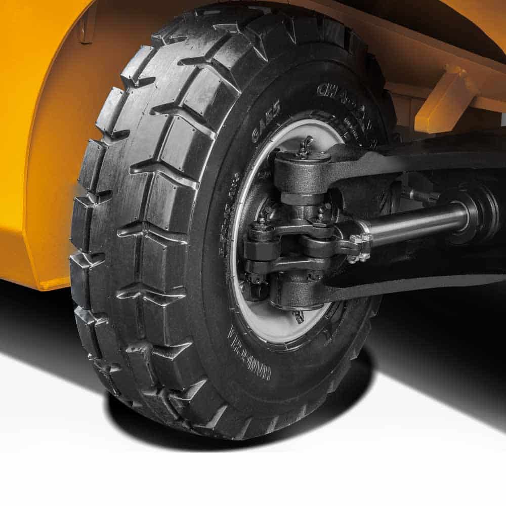 Sağlam ve dayanıklı direk, ön ve arka akslar ve içten yanmalı forkliftlere yönelik lastikler kullanılmıştır. Yerden yeterince büyük bir mesafe ile forklift, dış mekandaki engebeli zeminde kolaylıkla sürülebilir.